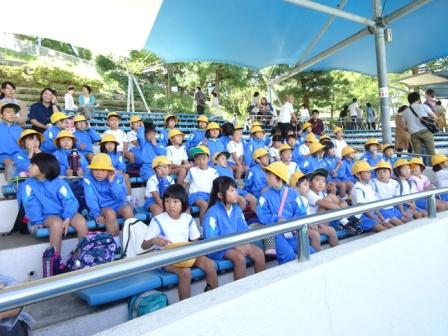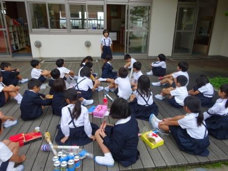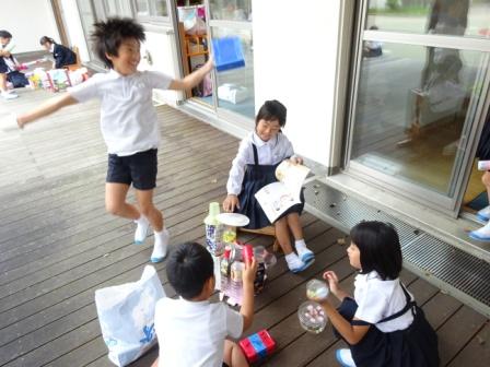 柳田植物公園では,お弁当を食べ,3,4年生ともに元気に遊びました。そして,満点星でプラネタリウムを見ました。プラネタリウムは,今夜見える星と『おじゃる丸 銀河がマロを呼んでいる』を見ました。きれいな夜空の星や臨場感あふれる映像に歓声をあげて見ていました。
