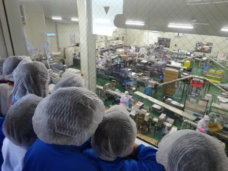 スギヨ北陸工場では,スギヨ仮面登場のDVDで盛り上がり,その後はちくわの製造の様子を見学させていただきました。また,焼きたてのちくわをいただき,大喜びの子供たちでした。