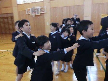 次に、全員で○×クイズとじゃんけん列車を行い、最後に円を作って今月の歌を歌いました。