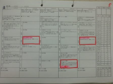2学期からはそれに加え、国・県・市の学力調査問題や補充・発展問題などと関連する授業に「H26市学力調査問題」などと明記するようにし、より意識して指導にあたることができるように工夫しました。しかも、全員の週案を職員室に掲示することで、全員で取り組む意識を高めています。
