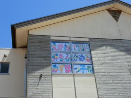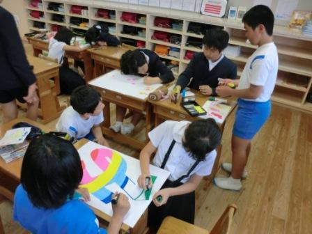 先日5・6年生で力を合わせてスローガンの色塗りをし,完成しました。