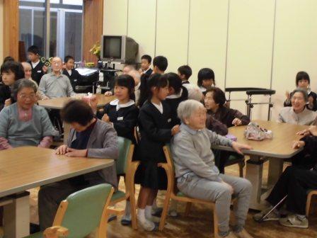 手遊びの歌のスピードをゆっくりにしたり、やさしく肩をたたいたりと、お年寄りを気遣う場面が沢山見られ、見ているこちらの心もあたたかくなりましたよ。