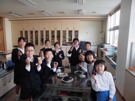 今日、園芸委員がさつまいもをゆでて、給食の時間に全校のみんなに配りました。