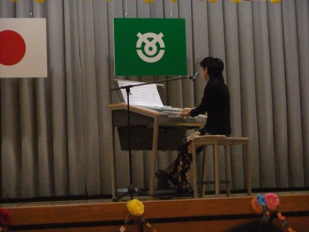続いてのゲスト演奏は、前田牧子さんによるエレクトーン演奏。「ゲラゲラポーの歌」「さくらさくら」「花は咲く」、そしてアンコールは、「アナと雪の女王」でおなじみの「Let it  go」。会場いっぱいに迫力のあるサウンドが響き渡りました。