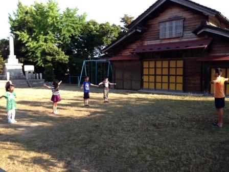 この町は児童数は少なめですが,ばっちり「ラジオ体操ライン」ができていました。