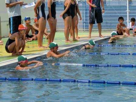青空のもと プールで瑞穂っ子が鍛えあう(校内水泳記録会)