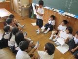 1年生のくちばしクイズにちょうせん!(1,2年生) 2014年6月10日 18時52分 1年生が国語の「くちばし」の学習で、自分たちで鳥の「くちばしクイズ」を作りましたよ。今日のドリルタイムに、1年生が2年生の教室に来て、クイズを出しに来てくれました! 縦割り班ごとに分かれて、1年生が絵を見せながら問題を上手に言ってくれました。緊張しながらも、相手をよく見たり、大きな声でお話したりしてくれましたね。2年生は 「去年ぼくたちもこんなクイズを作ったなあ。」「なつかしいね!」と言いながら、あったかい雰囲気で1年生のお話を聞いていました。難しい問題には、「うーん、ヒントちょうだい!」とお願いしながら頭をひねっていましたよ。 1,2年生での交流で、さらに低学年の絆を深めたいですね。また一緒にお勉強しましょう!