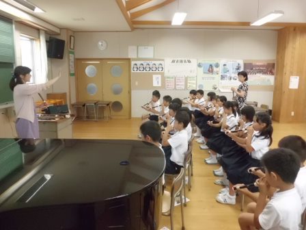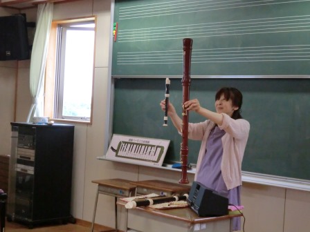 リコーダーの先生に習いました! 2014年6月14日 14時34分 3年生の音楽といえば、リコーダーとの出会いが挙げられます。そこで、リコーダーの先生をお招きしてのスペシャル音楽の時間を行いました。様々なリコーダーに驚き、一息で長く吹くことにも挑戦!みんな楽しくリコーダーの学習ができました。これからの音楽が、より一層楽しみですね。