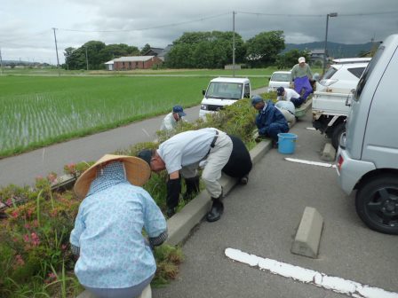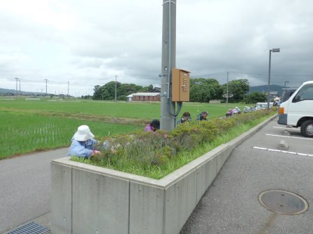 除草ボランティアの皆様に感謝です! 2014年6月17日 08時35分 先週6月13日(金)の午前中、除草ボランティアの皆様による除草作業が行われました。参加してくださったのは、富永老人会、柳田老人会、千路老人会の皆様です。当日は、今にも泣き出しそうな空模様でしたが、玄関前の花壇を始め、体育館前・横、中庭に至るまでていねいに作業してくださいました。途中、雨に降られる場面もありましたが、みなさんいっしょうけんめいで、学校のために貢献してくださる姿に感動しました。2時間に及ぶ除草作業で、花壇等はすっきり衣替えし、初夏のさわやかな風と共に輝きを増した感じです。老人会の皆様、ありがとうございました。今後、学習、運動、行事等により一層がんばります!
