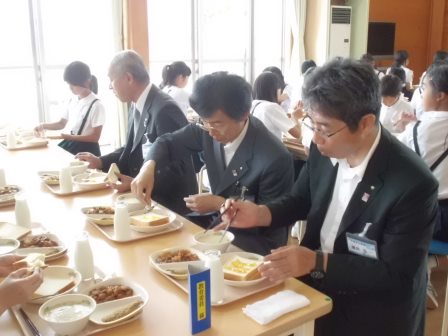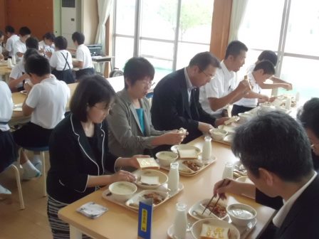 市教委学校訪問、ありがとうございました! 2014年6月18日 18時54分 羽咋市教育委員会による学校訪問が行われました。はじめに職員の自己紹介と教育活性化プラン(市教育ビジョンに則った学校独自の工夫した取組)の進捗状況について説明し、質疑応答が行われました。次に各学級の公開授業を参観していただき、あわせて校舎の設備や環境づくり等についても実際に見ていただきました。子どもたちはいつも通りの学びを展開し、よくがんばっていました。4限が終了し、通常は会議室で給食を食べていただくのですが、今回は瑞穂小の特徴である「黙食」と「毎日ほっとタイム」を実際に体験していただくために、ランチルームでいっしょに食べていただきました。BGMが流れる中、静かに食べる雰囲気はどうでしたでしょうか。その後の、よい行いをした人について書かれた日記の紹介や、朝の自主的なあいさつに参加した人の紹介、保健委員会からの歯に関する標語の表彰はいかがでしたでしょうか。瑞穂小では、お昼の全校が集うこの場を活用し、5分程度ですが個々の良さを全員で共有しています。教育委員会の皆様、本日は瑞穂小の教育活動を熱心にご覧いただき、ありがとうございました。本日いただいたご助言を生かし、明日からまた教職員一丸となってがんばります。