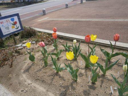 1年生が植えたチューリップがきれいに咲いています。