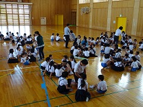 9日(金)に4つの縦割り班で,それぞれに6つの小グループをつくりました。小グループは1~6年生が6人の編成です。縦割り班から,さらに少人数のグループをつくることによって,異学年での交流をより深める狙いがあります。