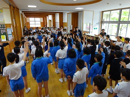 そして,次に全校でジャンケン列車をしました。ゲーム中はとっても盛り上がり,列車だけでなく,絆までつながったようでした。