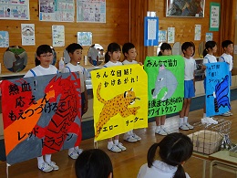 今週から全校で毎朝,応援の練習をしています。応援は「ゴーゴーゴー」という歌に合わせて,行います。みんな相手の団に負けまいと声を張り上げて練習に打ち込んでいます。