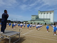 全校練習の内容は,整列や行進,ラジオ体操などです。