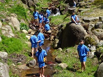 そして,お弁当の後は,みんなで仲良くおやつを交換して楽しんでいました。ある程度お腹が膨らんできますと,ほとんどの子がまた川に入って遊び始めていました。