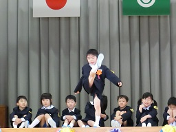 20日(木)に1年生を迎える会がありました。まずは,1年生がステージ上で一人ずつ自己紹介をしました。ポーズを付けたかわいい自己紹介は,とてもほほ笑ましいものでした。