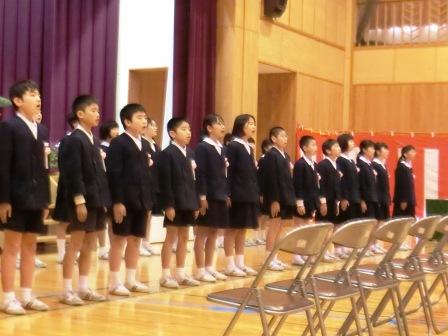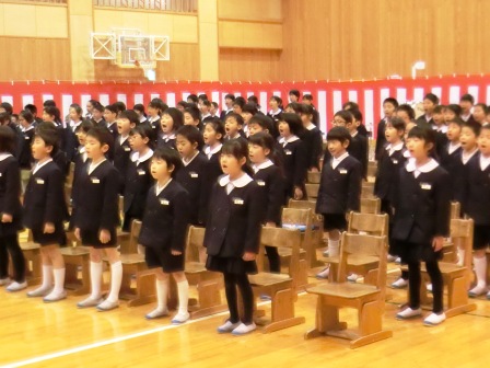校長先生から進級を認めていただいた全児童は、次の学年にむけて気持ちを新たにしていました。また、校長先生からは、「今年みなさんはたくさん勉強をしました。学校は勉強するところです。学年の進んだ来年度も、しっかり勉強していきましょう。」とのお話がありました。