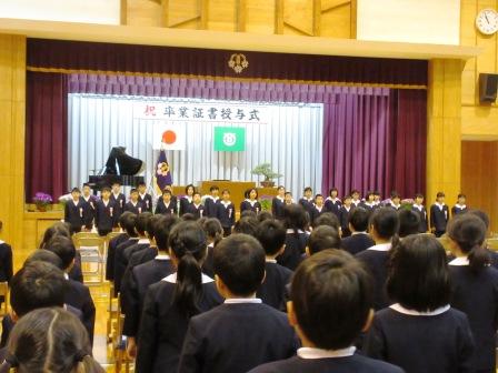 式では、6年間の学びを修了した大変凛々しい28名の卒業生の姿、そして、これまでお世話になったお兄さん、お姉さんに感謝の気持ちを精一杯伝える在校生の姿が見られました。