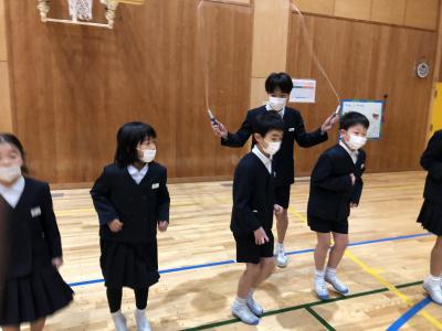 1月27日(金)たてわり対抗のなわとび集会がありました。