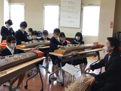 今回,4年生が音楽の時間にお箏を習いに行ってきました。