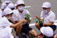 今年もたてわり班で協力してプランターに花を植えました。