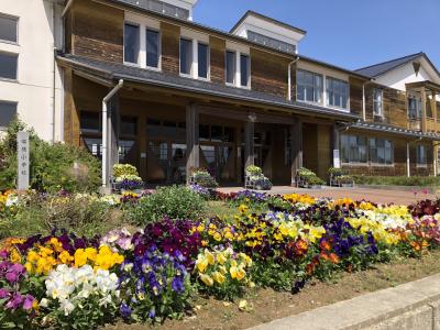 瑞穂小の玄関前花壇は,今パンジーが咲き誇っています。