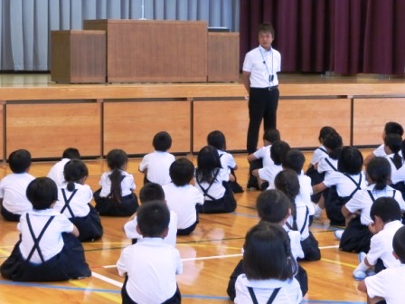 校長先生からは、夏休みの過ごし方について、「しっかり計画を立てて、計画よりちょっとだけ多く実行しよう」、「事故にあわないように、十分に安全に気をつけよう」といったお話がありました。