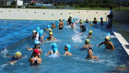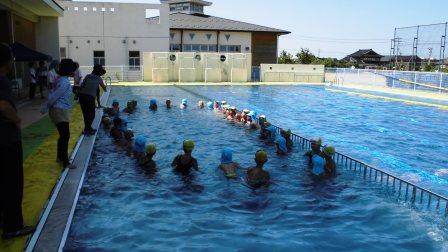 交流会では、プールで水遊びをした後、校舎内を探検して回りました。プールでは年長さんの手を取って遊ばせてあげたり、「ここは、~をするお部屋だよ。」と声をかけながら校舎内を案内したりと、やさしく接する5年生の姿が随所にみられ、大変ほほえましい交流会となりました。