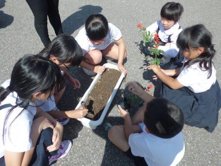 これから水やり当番も班で行い、元気できれいな花を咲かせてほしいと願っています。