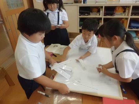 本校では、赤組・黄組・白組・青組の4色に分かれ、縦割り活動を行っています。