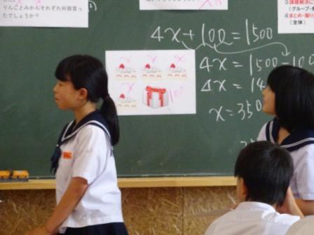 式の意味をつかみ,考え方を説明している子,