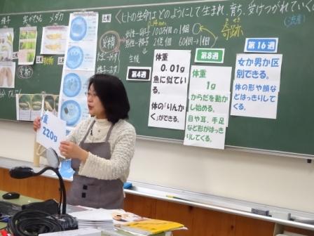 山口養護教諭がヒトの母体内での成長について知識の部分を,