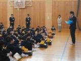 始めに校長先生と生徒指導の先生から、集団下校の大切さや、集団下校中に気をつけることのお話を聞きました。