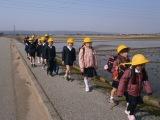 上級生のお兄さん、お姉さんと一緒に登校し、通学路を覚えています。