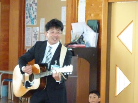 今日は,教頭先生が,軽快な弾き語りとともに,