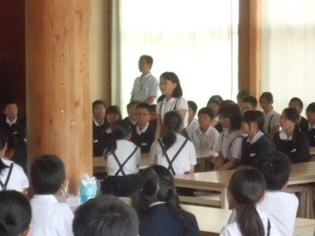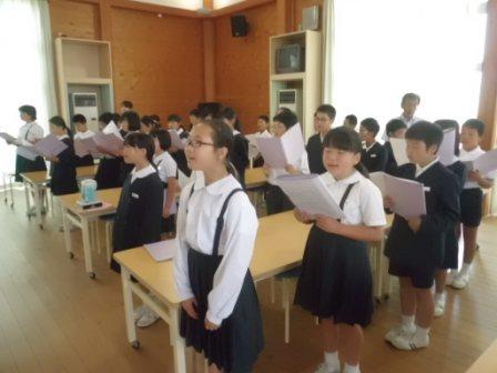 最後は,全校で今月の歌『未来へつなぐメッセージ』を合唱。