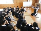 はじめに、羽咋警察署のおまわりさんから、「『いかのおすし』を守って安全に登校しましょう!」というお話を聞きました。