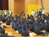 学校説明では,今年度のスローガン「より進んで実践 ~みんなで楽校づくり~」と学習指導・生徒指導・体育保健指導の取り組みについてお伝えしました。