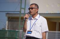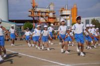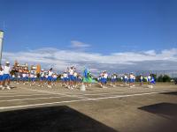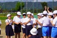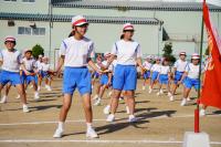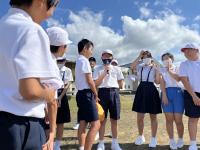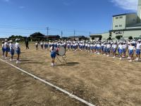 9月20日、青空のもと全校で開会式の練習をしました。