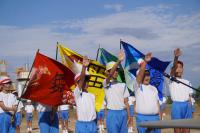 各団の団旗も完成し、副団長が掲げます!色鮮やかで、青空に映えますね。