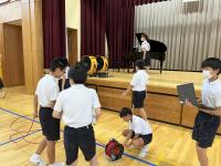 朝から体育館に1・6年生が集まり、
