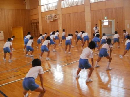 を中心に行いました。指導者の方は身振り手振りを交えて,運動することの意味や効果を,