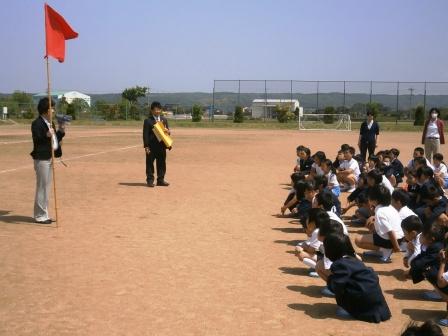 調理室で火災が発生したという設定で、全校児童がグラウンドに避難する練習をしましたよ。