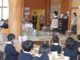 はくい獅子舞保存活性化実行委員会のメンバーである歴史民俗資料館の中野さん、ICT支援員の若狭さんを招き、今まで調べたことや祭りの活性化に向けての提案について聞いていただきました。それぞれ自分たちの町の祭りや獅子舞の歴史や実態を聞き取りやアンケート等で調査し、考えをまとめ、「青春団を作る」「チラシを作成」「ショーをする」「体験会をする」などいろいろな提案がなされました。祭りに詳しいゲストティ-チャー2名も感心され、「どの町も本当によく考えた驚きの発表や提案でした。こんなにすごく、よく考えた内容に本当に驚きました。ぜひ、これからも祭りを大切に地域を大切にしていってほしいです。」とお褒めの言葉をいただきました。