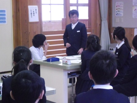 はくい獅子舞保存活性化実行委員会のメンバーである歴史民俗資料館の中野さん、ICT支援員の若狭さんを招き、今まで調べたことや祭りの活性化に向けての提案について聞いていただきました。それぞれ自分たちの町の祭りや獅子舞の歴史や実態を聞き取りやアンケート等で調査し、考えをまとめ、「青春団を作る」「チラシを作成」「ショーをする」「体験会をする」などいろいろな提案がなされました。祭りに詳しいゲストティ-チャー2名も感心され、「どの町も本当によく考えた驚きの発表や提案でした。こんなにすごく、よく考えた内容に本当に驚きました。ぜひ、これからも祭りを大切に地域を大切にしていってほしいです。」とお褒めの言葉をいただきました。