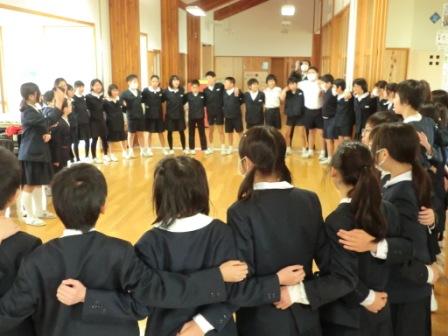 最後は,高学年で男女関係なく肩を組み,笑顔で歌う姿がありました。
