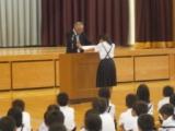そして、今日、小麦色になったコーチと選手たちが学校を訪問し、大会の結果報告と大会を終えての感想を先生たちに向けてお話しました。