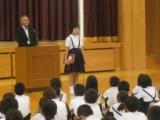 生徒指導担当からは、2学期からも「より進んで」挨拶レンジャー、3黙運動(黙想・黙礼・黙働清掃)、感謝しマット、アクション5を続けてがんばろうということと、「あいさつプラスワン」についての話がありました。