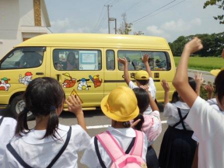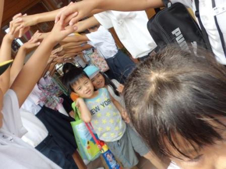 交流会後には,みんなでアーチを作って,年長さんのバスが見えなくなるまで見送りました。